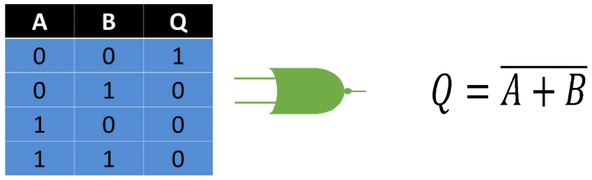 La compuerta NOR es similar a la NAND por lo que básicamente es el inverso o conjugado de la compuerta NOR.