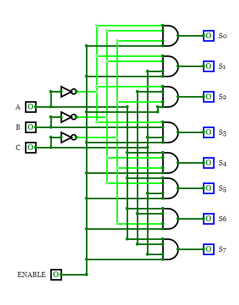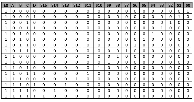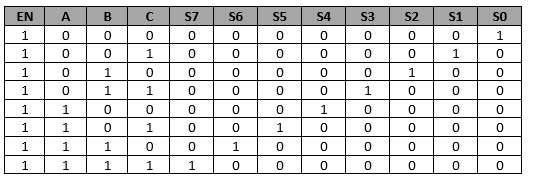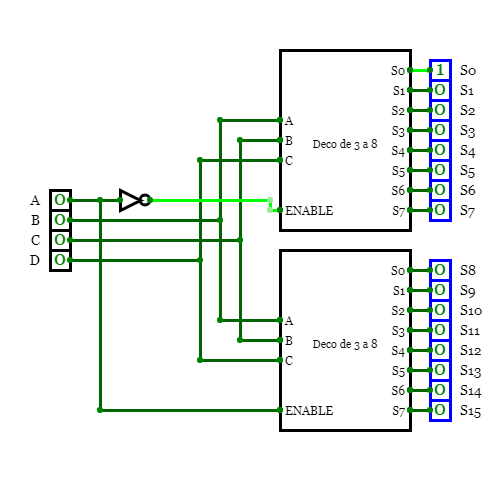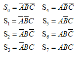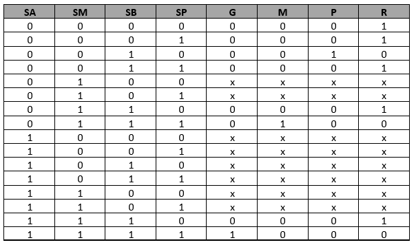 Hallaremos la ecuación de cada salida por medio de Mapas de Karnaugh: