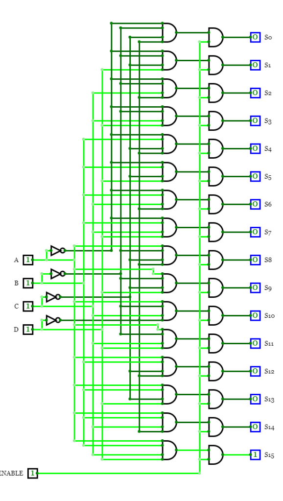 I. Diseñamos el decodificador de 4 : 16