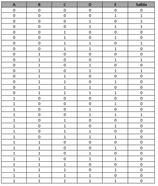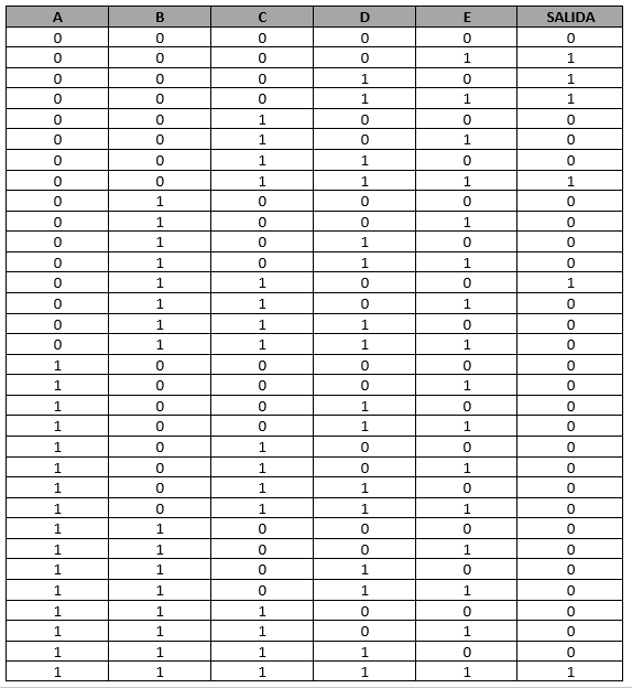 Realizamos la tabla de verdad de la función a trabajar