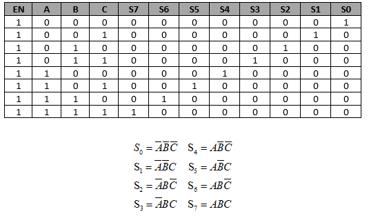 Analizando la salida del decodificador podremos obtener la ecuación de salida