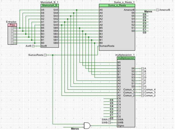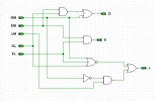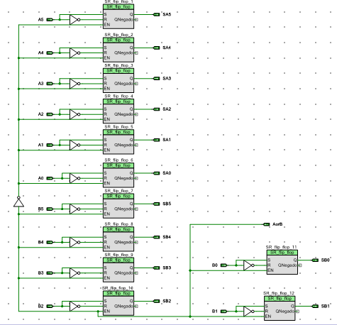Después de tener implementado las dos memorias de 6 bits procedemos a diseñar el comparador de 6 bits, esto con el objetivo de poder realizar la operación resta en nuestro circuito, ya que solo nos va a interesar la salida A < B.