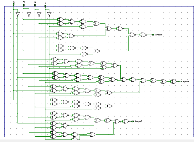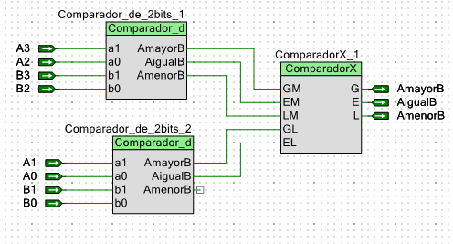 Teniendo diseñando el comparador de 2 bits, realizamos el comparador de 4 bits: