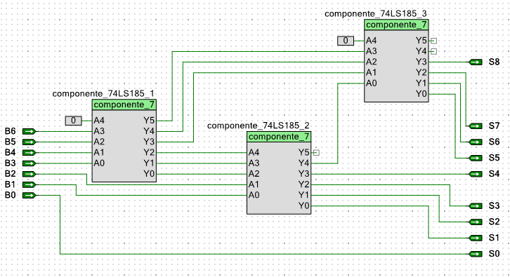 Después lo organizamos según el datasheet para obtener un convertidor de binario a BCD de 7 bits: